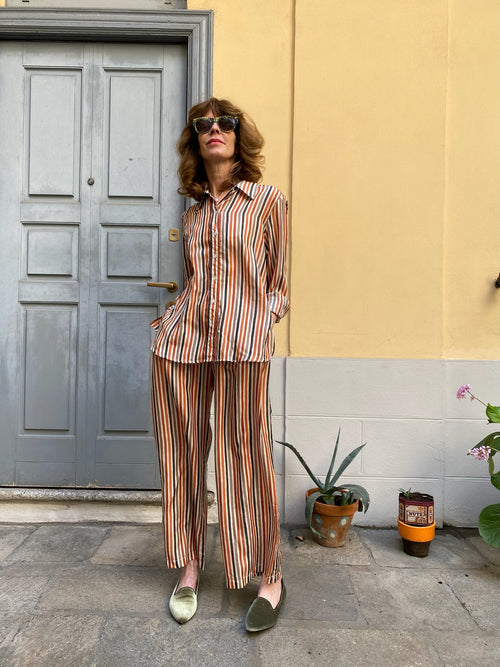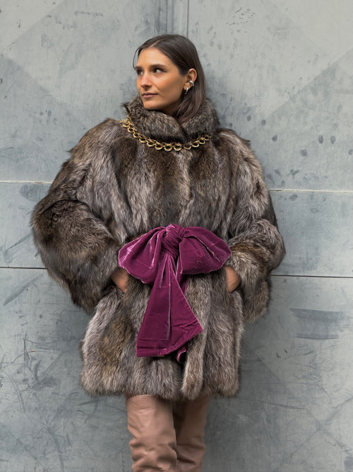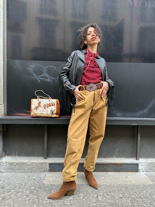 Longsleeve Unsigned in quella che riteniamo essere una taglia M. In suede marrone con motivo a treccia che percorre il capo in diagonale. Scollo stondato e spalle scese. La maglia presenta degli elastici in cucitura nei polsini. Data la natura...